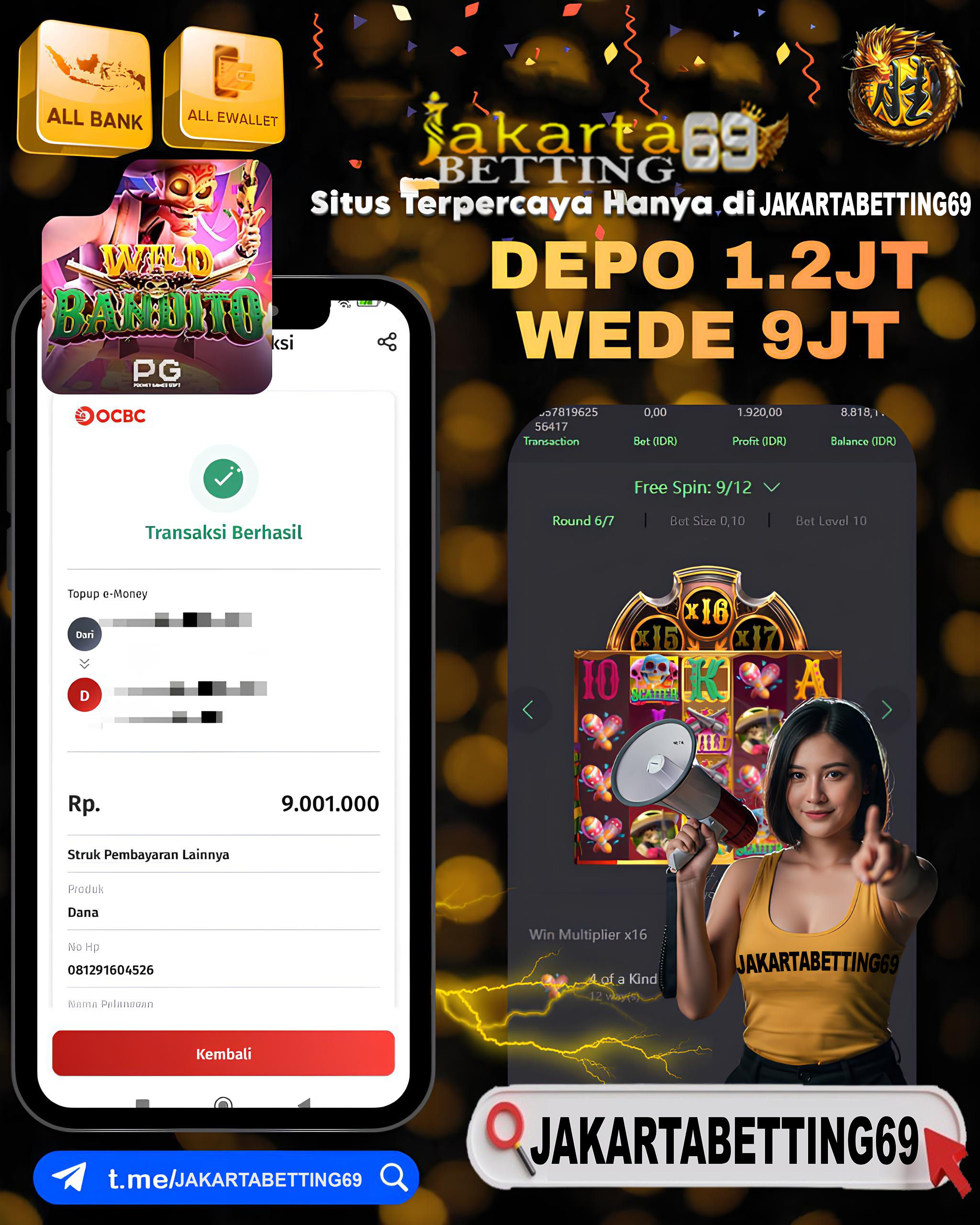 Selamat kepada AJ*****NA karena telah memenangkan jackpot senilai Rp. 9,000,000